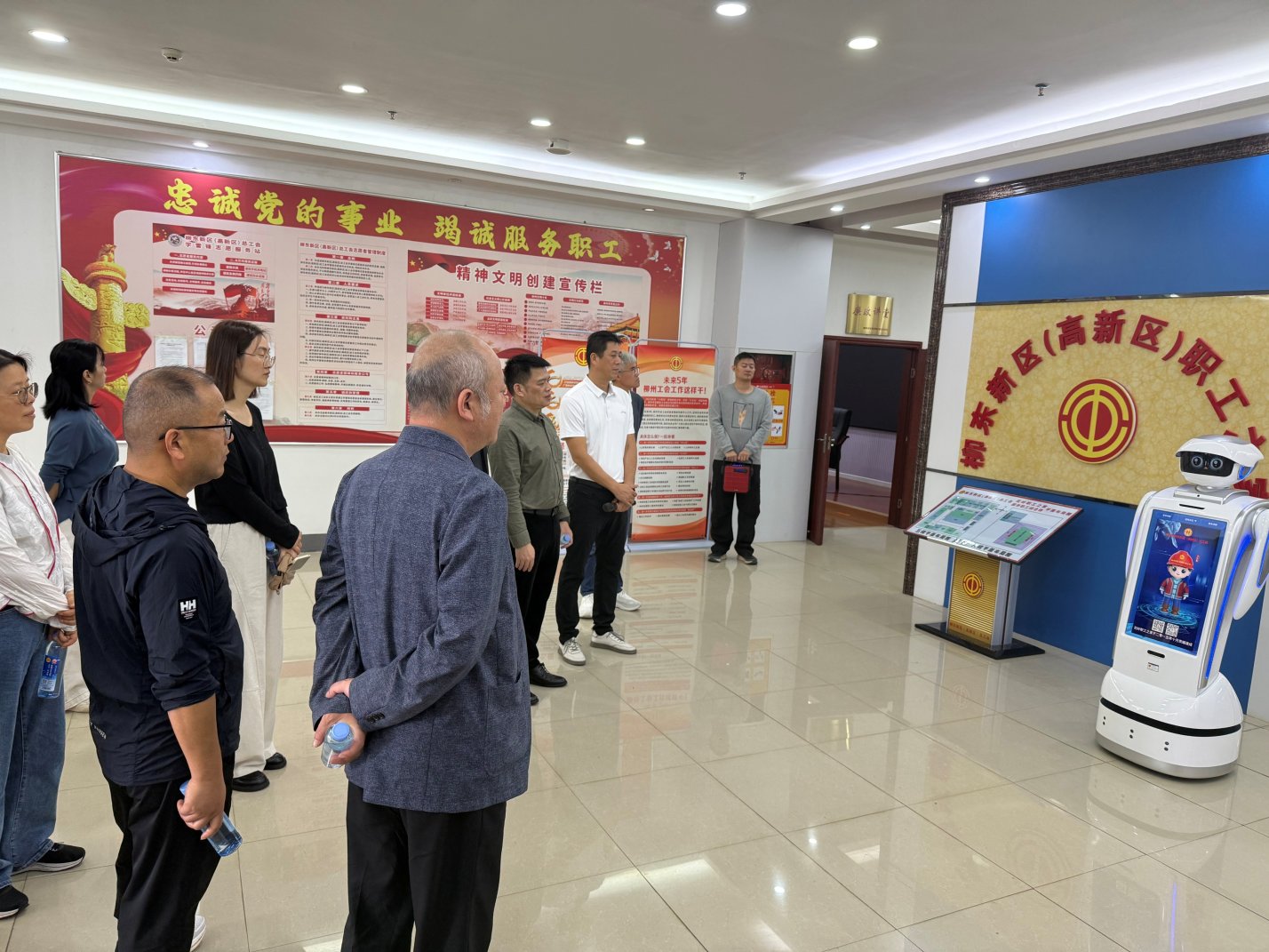 昆山市总工会考察组在柳东新区(高新区)总工会经费审查委员会主任麦爱文和工会智能机器人“工小慧”的引领和讲解下,相继参观了职工健康服务中心、职工劳动保护培训中心、乒乓球室和健身房等服务阵地。详细了解了花岭职工之家的服务设施和服务举措,考察团对柳东新区(高新区)总工会举办的文体活动和竞赛给予了充分肯定,为花岭职工之家服务阵地的后续优化建设鼓舞信心。