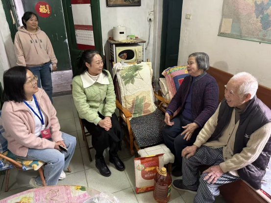 会后,“暖心小分队”携米、油、牛奶等慰问品,走访困难家庭及高龄老人,细致询问生活状况、倾听诉求,现场解读工会医疗互助等政策,鼓励坚定信心。活动聚焦“一老一小一困”,通过前期摸排建立“需求台账”,确保帮扶精准务实,真正让“党建引领”转化为“看得见的服务”,“工会聚力”体现为“摸得着的温暖”。