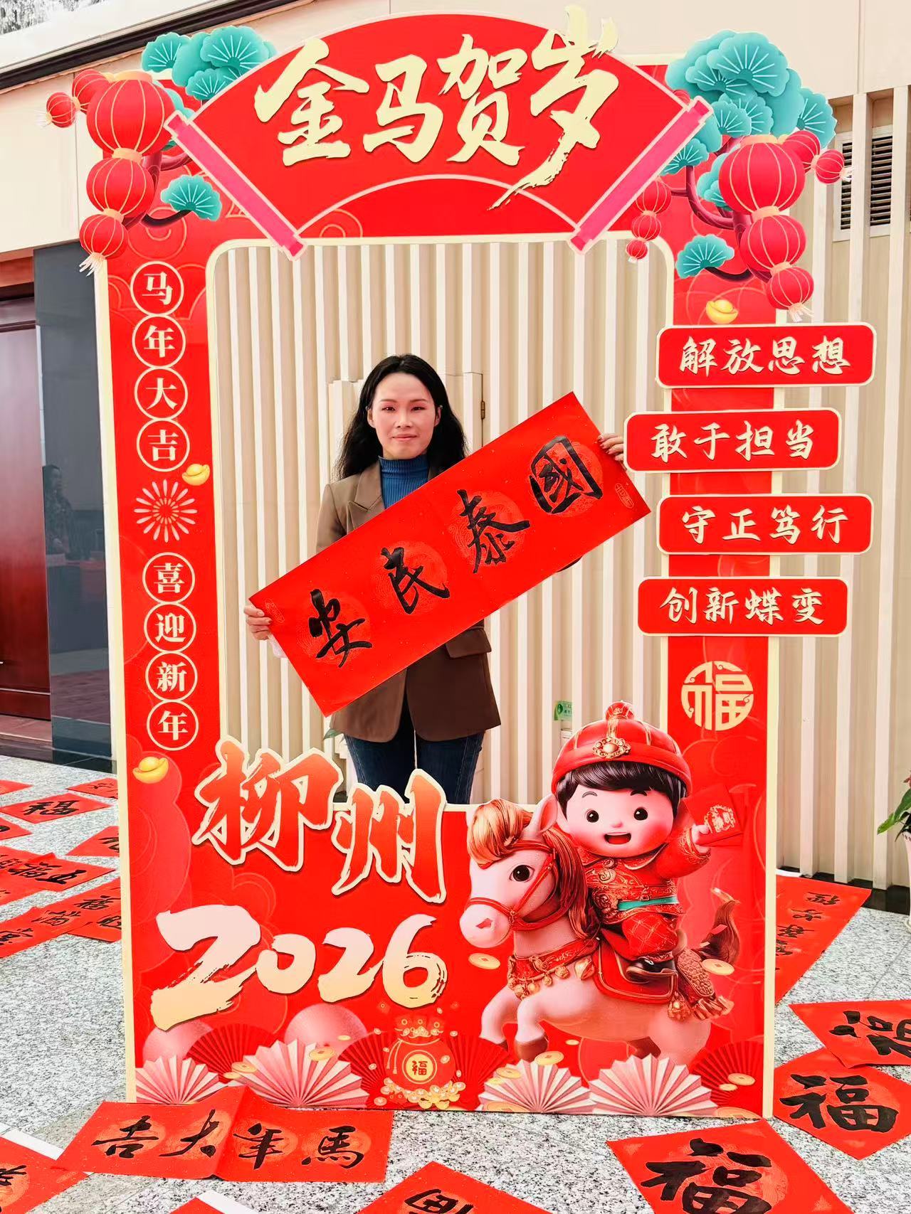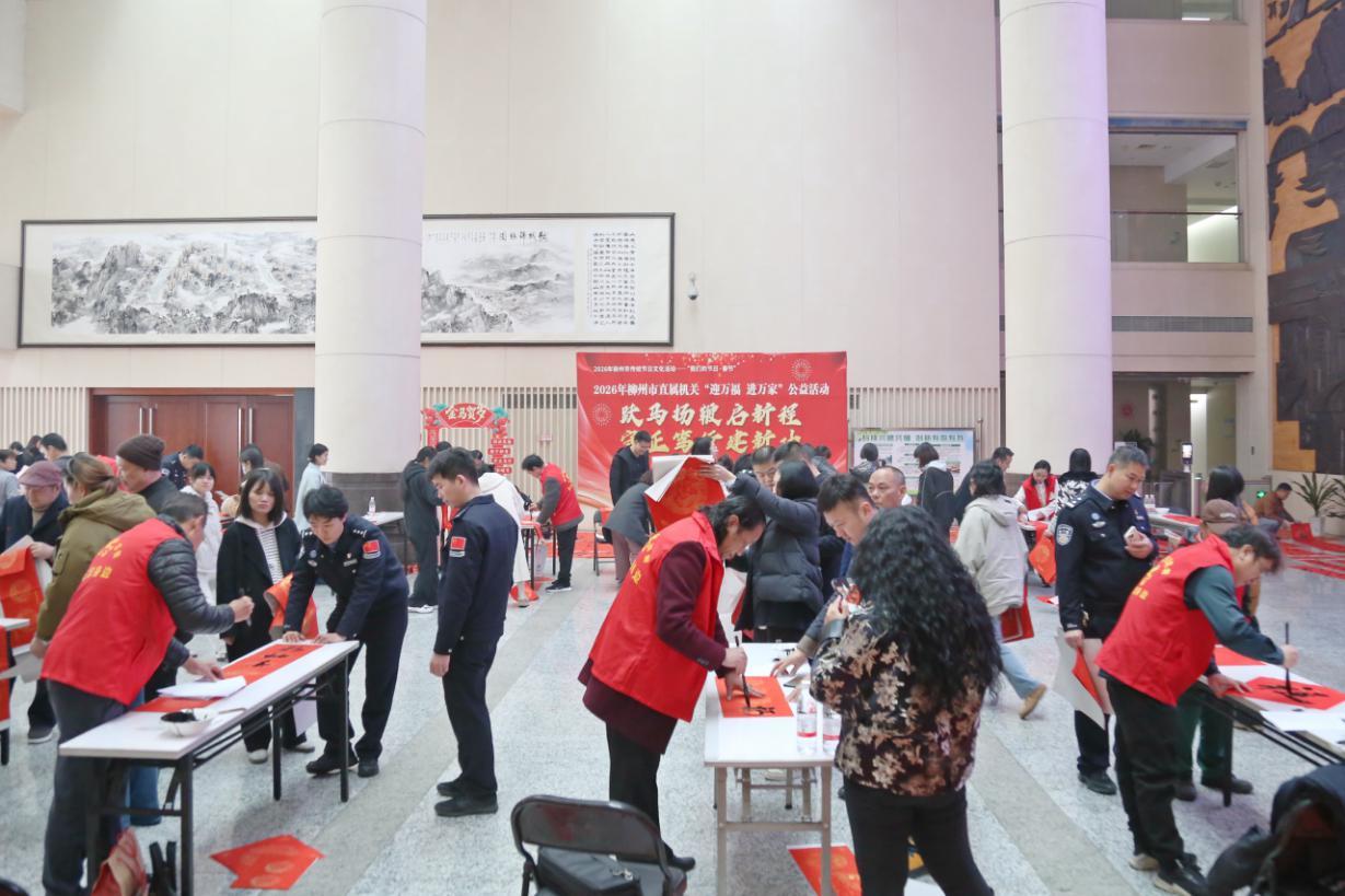 活动现场,20位来自柳州市书法家协会书法家、市直机关书法培训班优秀学员齐聚挥毫、提笔运墨,为机关职工写春联、送“福”字。字里行间,既有对马年策马扬鞭、奋进笃行的昂扬愿景,也饱含着对阖家安康、幸福美满的诚挚祝福。“各位书法家写的对联和‘福’字笔力苍劲、寓意吉祥,一笔一划都是马年的好彩头,张贴在家门口更能感受到浓浓的年味!”现场领到春联和“福”字的机关职工说,“中华优秀传统文化博大精深,历经岁月传承愈发鲜活。这样的活动是我们坚定文化自信的生动实践,希望能年年举办,让这份年味和优秀传统文化一直延续下去。”
