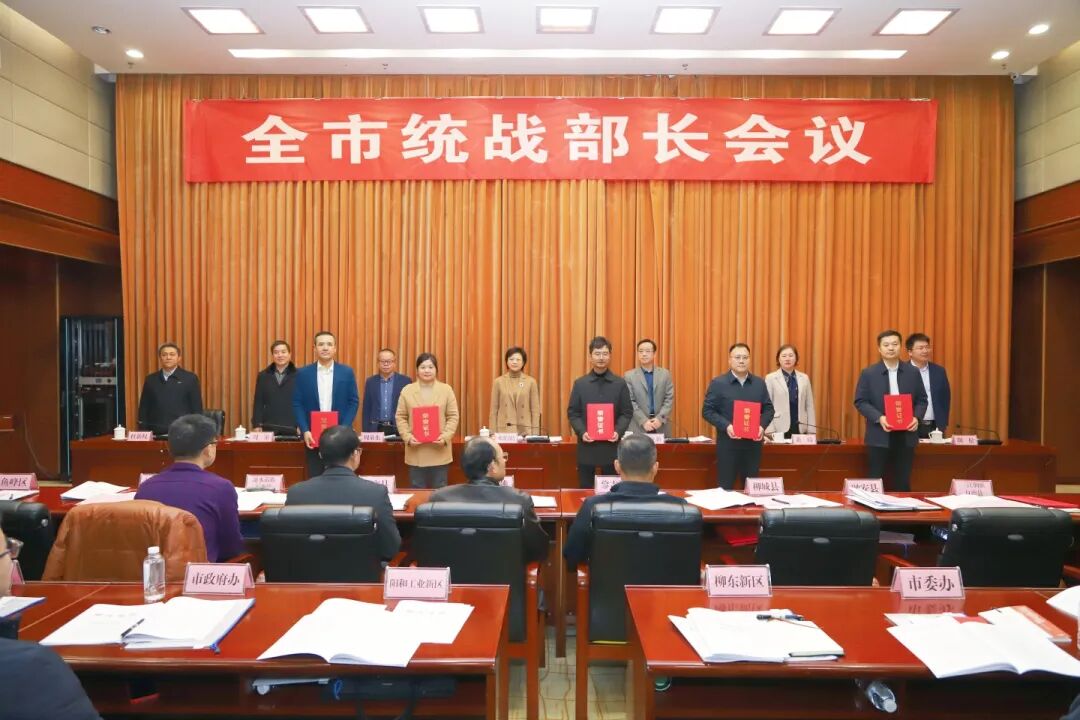 会议为获得2023年度全区、全市统战信息工作和统战理论政策研究、统战工作实践创新成果、统战宣传工作奖项的先进单位和个人颁发荣誉证书;宣读了柳州市统一战线新型智库成立决定,为首批智库专家代表颁发聘书。柳城县委统战部、鹿寨县委统战部、三江县委统战部、柳北区委统战部、城中区委统战部、市委教育工委、市工商联分别作交流发言。