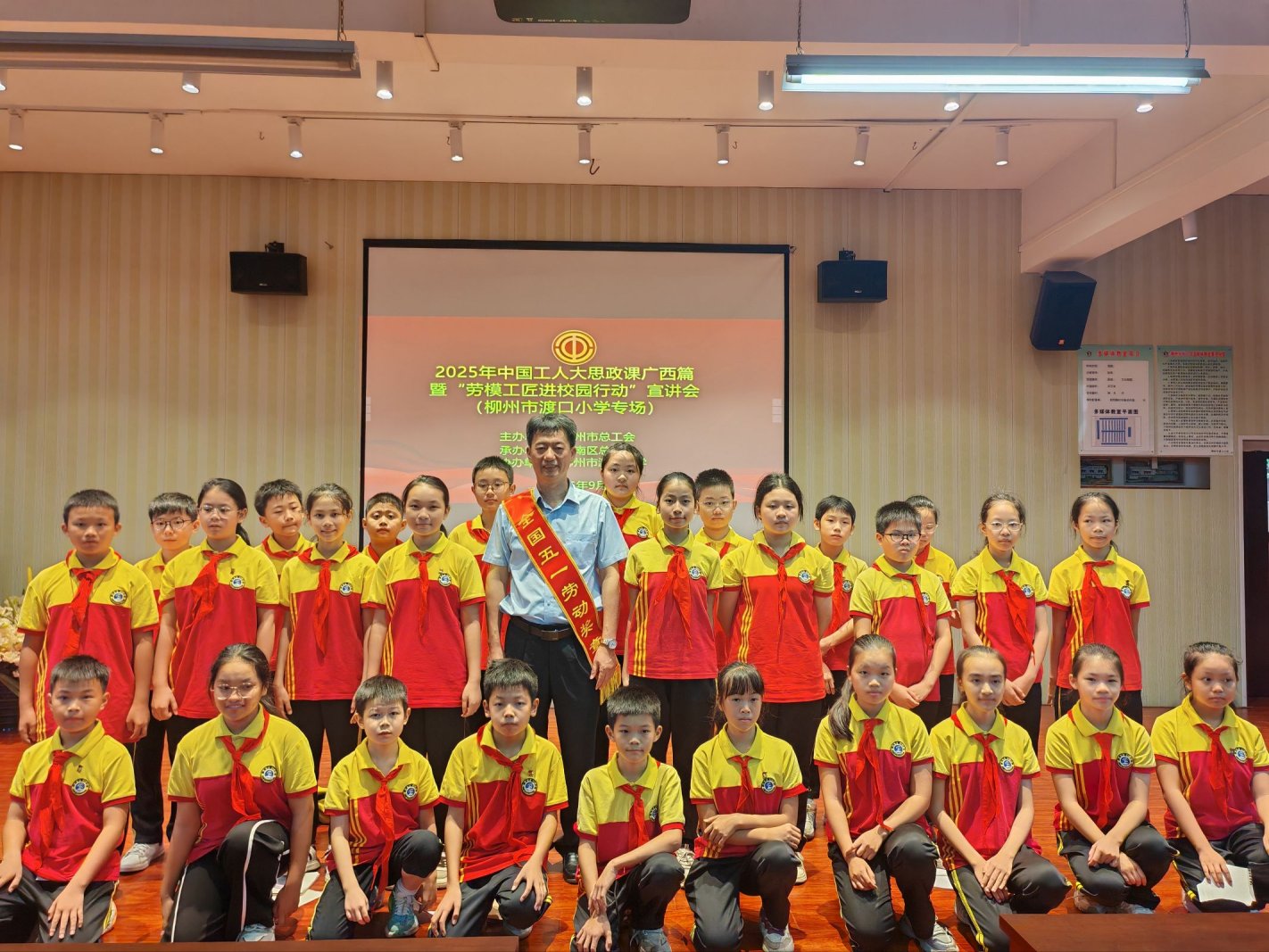 9月26日,“劳模工匠进校园”宣讲活动在柳州市渡口小学举办。来自六年级的155名师生齐聚阶梯教室,共同迎来一场浸润“中国工人大思政”精神的特殊课堂——柳钢集团工匠学校执行副校长、全国五一劳动奖章获得者陶柏明,以《匠心独具 学习成长》为题,用自身 40 余年的一线奋斗经历,为少年们解锁“劳动创造价值、匠心点亮人生”的成长密码。