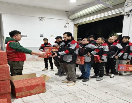 ▲柳州市物流行业工会联合会给供应链的物流货车司机发放暖“新”礼包